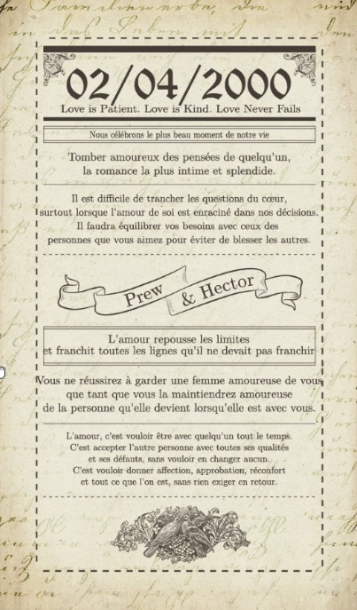 Lettre de Mariage entre Hector et Prew